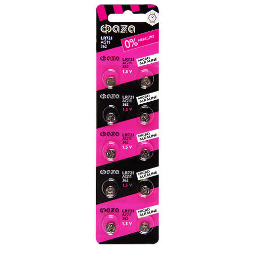 Элемент питания алкалиновый "таблетка" LR58/LR721/AG11/G11 1.5В BL-10 (уп.10шт) ФАZА 5002760