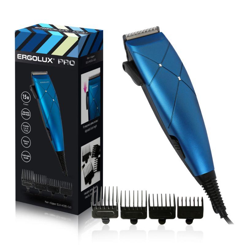 Машинка для стрижки волос ELX-HC05-C45 черн. с син. 15Вт 220-240В Ergolux 14396