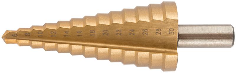 Главная/ Каталог продукции / Электроинструменты и аксессуары для них / Сверло / Сверло по металлу ступенчатое 6-30мм 13 ступеней HSS КУРС 36403