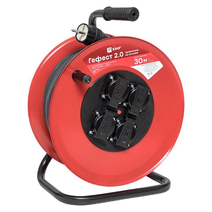 Удлинитель на катушке 4х30м с заземл. 16А IP44 Гефест 2.0 3.5кВт КГ 3х2.5 с предохранителем PROxima EKF UKG02-16-R325-4-30-IP44