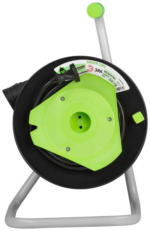Удлинитель силовой ЭРА GREEN LINE на пластиковой катушке GAZ-2x0.75-30m, 1 розетка без заземления. Провод 30м ПВС 2х0,75мм2. Мощность 6А/1300Вт. Используется для работы на строительных площадках или дачных участках. Удобен при работе с приборами, находящимися удаленно от стационарной розетки. Например, газонокосилки, электрические, пилы, триммеры или электродрели. Рама удлинителя сделана из высокопрочной стали, а пластиковой корпус катушки выполнен с применением негорючих добавок.