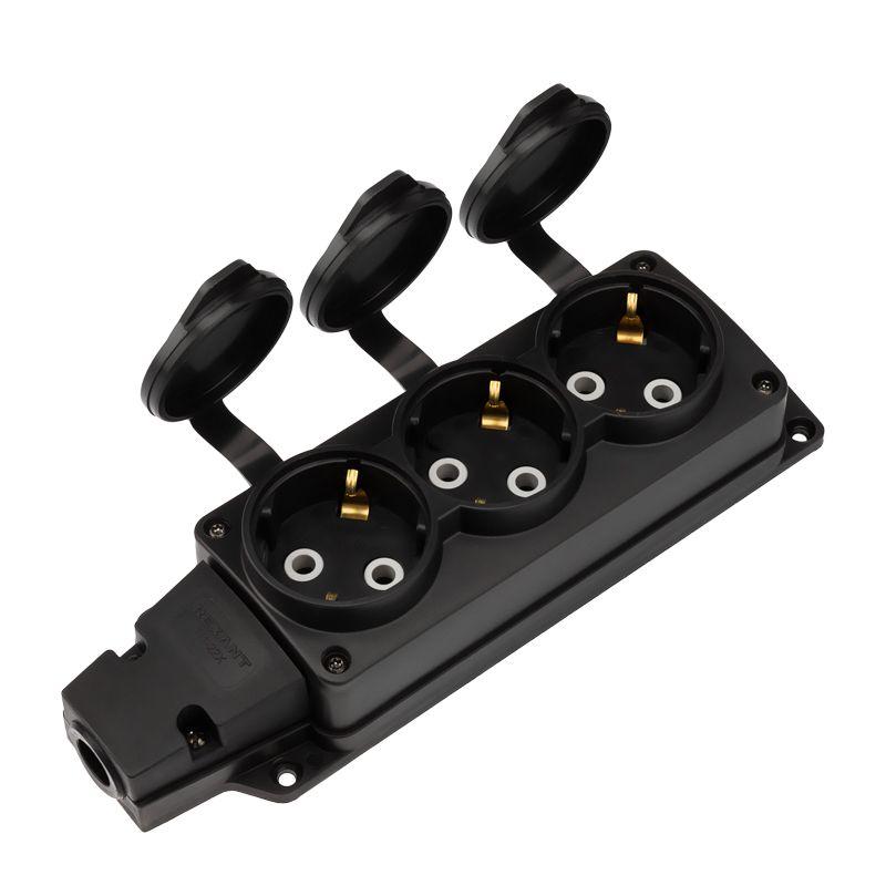 Главная/ Каталог продукции / Электроустановочные изделия / Блок розеток, удлинитель / Колодка удлинителя 3-м с заземл. 16А IP54 влагозащ. с защ. крышкой COMPACT каучук черн. Rexant 111-223
