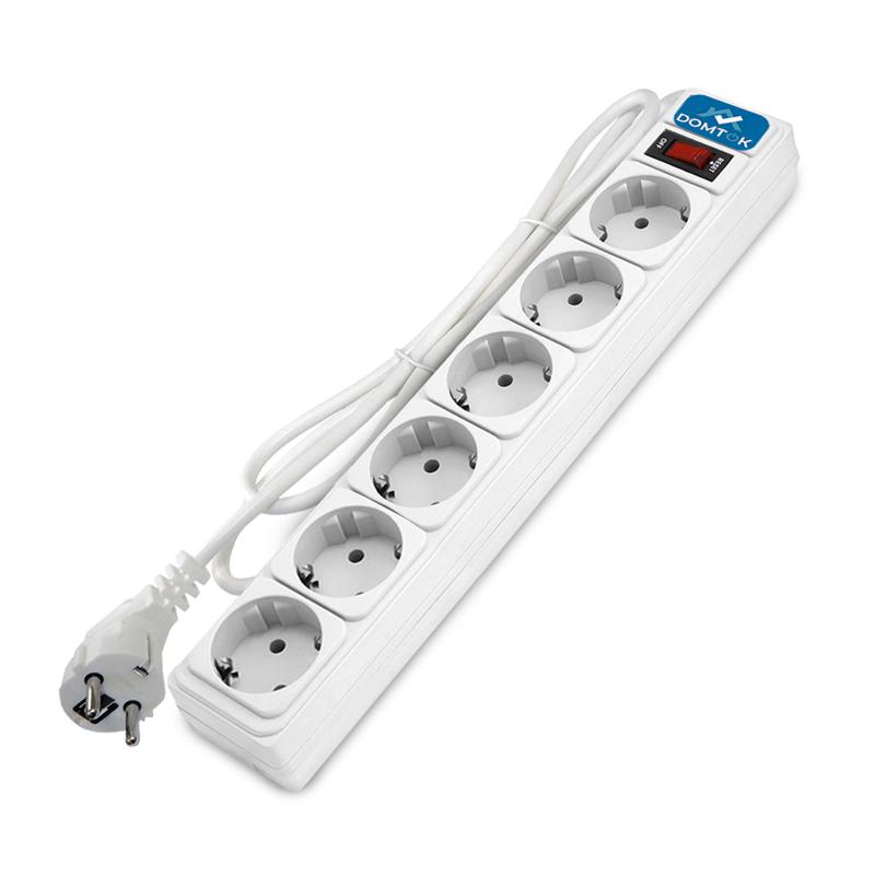Удлинитель с сетевым фильтром 6х5м с заземл 10А IP20 2.2кВт ПВС 3х1 с выкл. бел. DOMTOK 2517