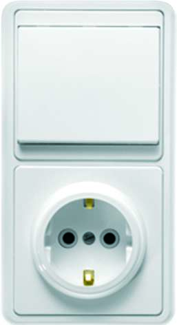 Главная/ Каталог продукции / Электроустановочные изделия / Блок "Выключатель-розетка" / Блок БКВР-031 Бэлла (1-кл. выкл. + розетка с заземл.) бел. Кунцево 5819