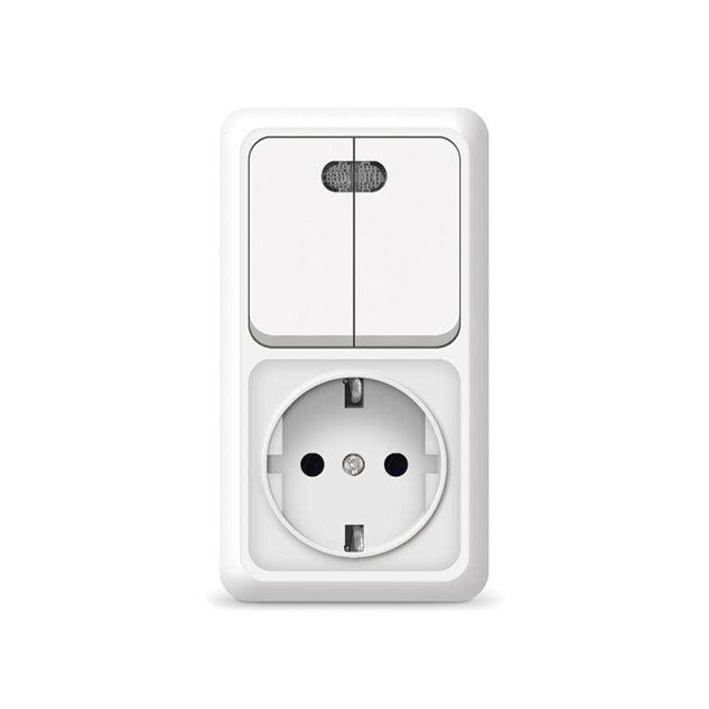 Главная/ Каталог продукции / Электроустановочные изделия / Блок "Выключатель-розетка" / Блок ОП Олимп 2-кл. вык. с подсветкой + роз. с заземл. верт. бел. UNIVersal О0041