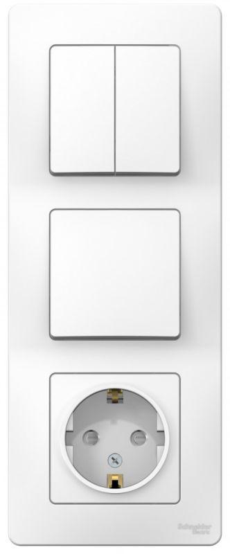 Главная/ Каталог продукции / Электроустановочные изделия / Блок "Выключатель-розетка" / Блок СП Blanca (розетка с заземл. защ. шторки 16А 250В + 1-кл. выкл. + 2-кл. выкл.) бел. SE BLNBS101201