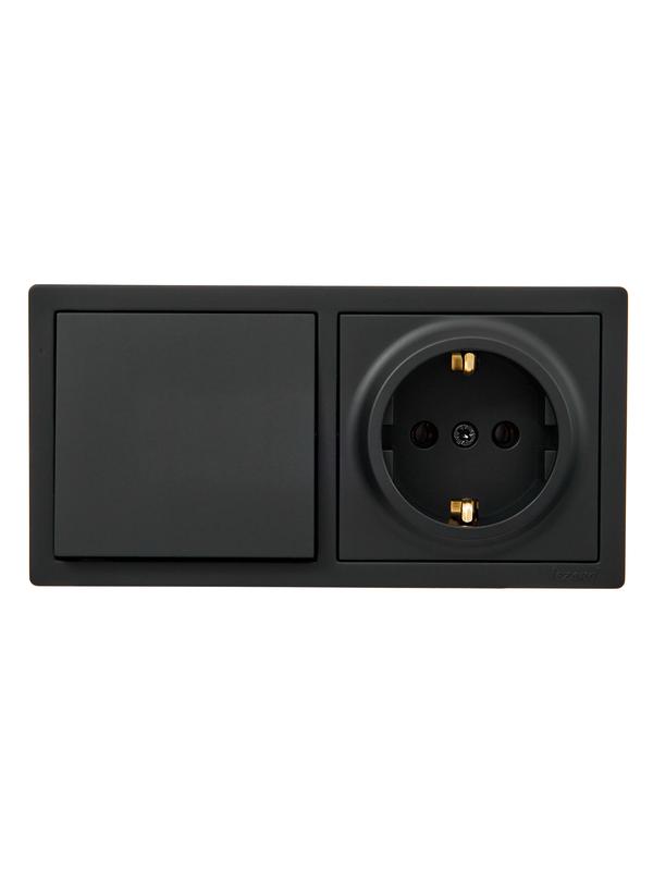 Блок ОП LETO (1-кл. выключатель + 1-м розетка с заземл.) горизонт. черн. бархат LEZARD 752-4200-170BAP