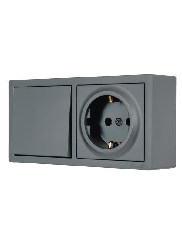 Блок ОП LETO (1-кл. выключатель + 1-м розетка с заземл.) горизонт. графит LEZARD 752-3400-170BAP