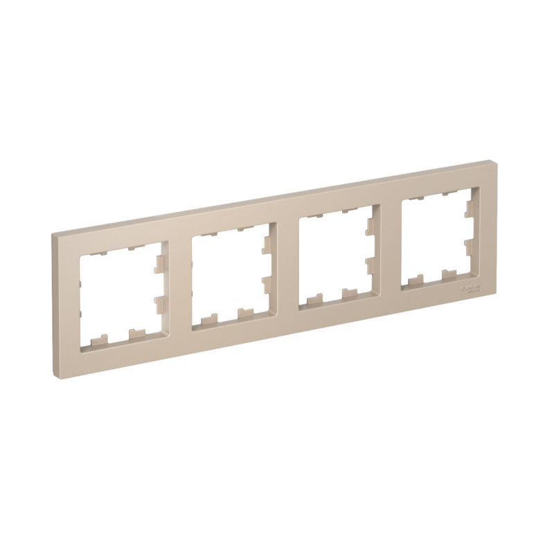 Рамка Systeme Electric (ранее Schneider Electric) серии AtlasDesign в цвете песочный четырёхместная. Устанавливается в вертикальном и горизонтальном положениях. Лицевые детали из качественного ABS-пластика, устойчивого к царапинам и УФ-излучению. Позволяет гармонично вписать электроустановочное изделие в интерьер помещения.