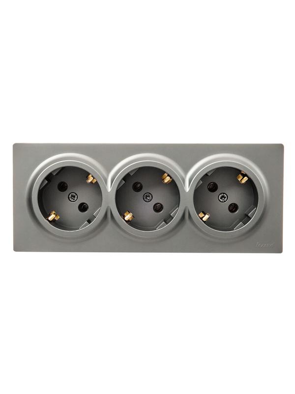 Розетка 3-м ОП LETO с заземл. закрытый корпус ПБТ платина LEZARD 752-3500-127BUP