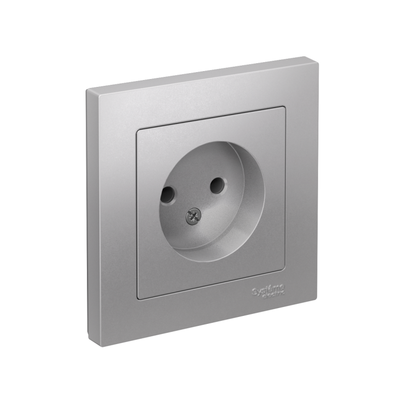 Розетка в сборе Systeme Electric (ранее Schneider Electric) серии AtlasDesign в цвете алюминий одинарная без заземления и без шторок подходит для сетей 250 В, на ток 16 А. Лицевые детали из качественного ABS-пластика, устойчивого к царапинам и УФ-излучению. Изделие поставляется в комплекте с рамкой того же цвета. Усиленные прямые монтажные лапки для лучшей фиксации механизма в монтажной коробке.