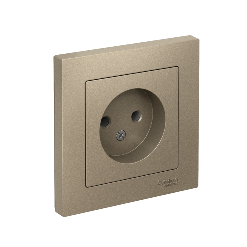 Розетка в сборе Systeme Electric (ранее Schneider Electric) серии AtlasDesign в цвете шампань одинарная без заземления и без шторок подходит для сетей 250 В, на ток 16 А. Лицевые детали из качественного ABS-пластика, устойчивого к царапинам и УФ-излучению. Изделие поставляется в комплекте с рамкой того же цвета. Усиленные прямые монтажные лапки для лучшей фиксации механизма в монтажной коробке.