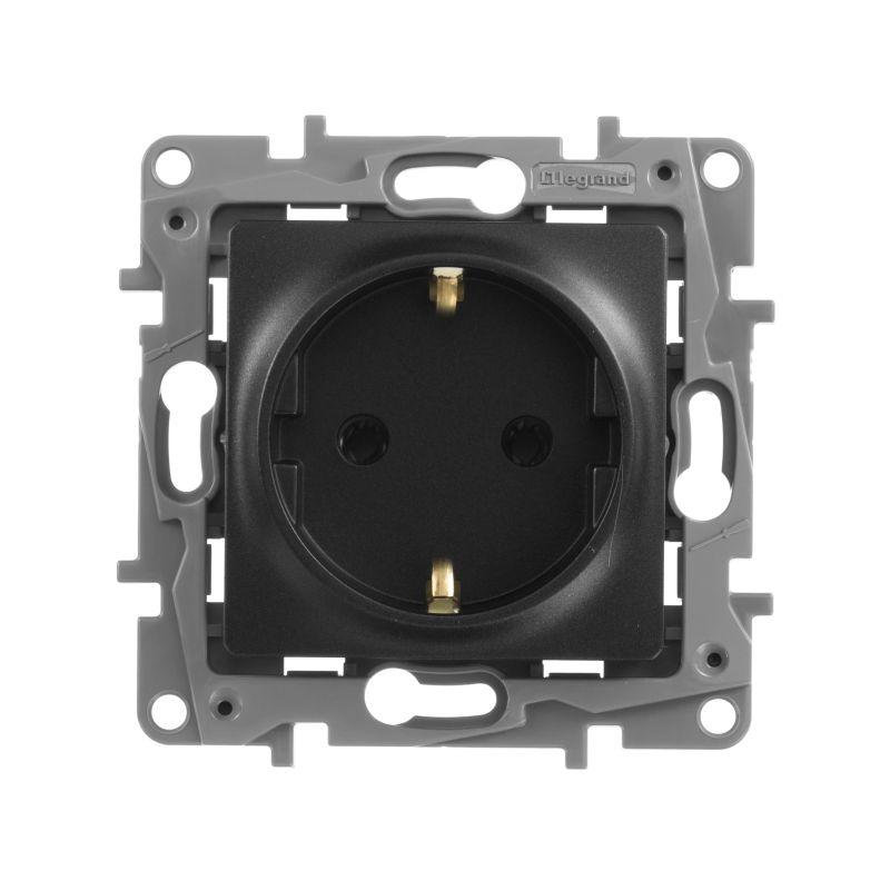 Розетка с заземлением ETIKA для скрытого монтажа. Максимальный ток 16 А, максимальная мощность 3680 Вт. Применяется в зданиях, оборудованных для повышения безопасности проводкой с заземлением (с защитным проводником).