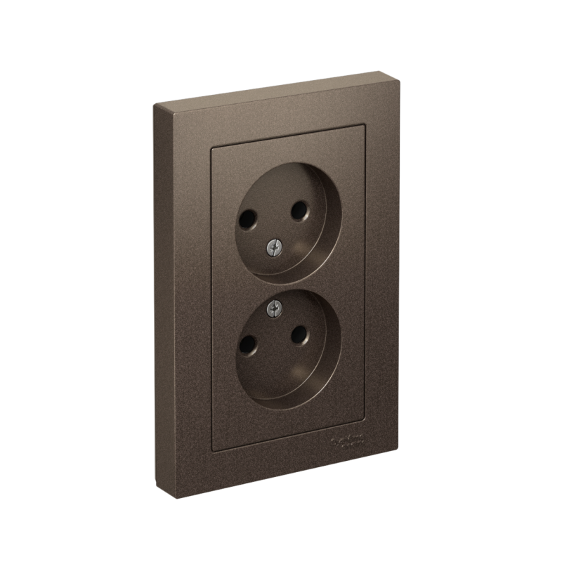 Розетка двойная в сборе Systeme Electric (ранее Schneider Electric) серии AtlasDesign в цвете мокко без заземления и без шторок подходит для сетей 250 В, на ток 16 А. Лицевые детали из качественного ABS-пластика, устойчивого к царапинам и УФ-излучению. Двойная розетка позволяет подключить два устройства в одном месте. Изделие поставляется в комплекте с рамкой того же цвета. Усиленные прямые монтажные лапки для лучшей фиксации механизма в монтажной коробке.