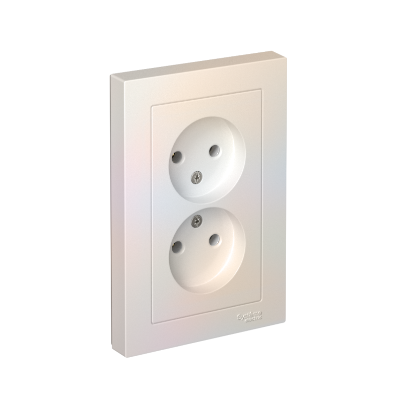 Розетка двойная в сборе Systeme Electric (ранее Schneider Electric) серии AtlasDesign в цвете жемчуг без заземления и без шторок подходит для сетей 250 В, на ток 16 А. Лицевые детали из качественного ABS-пластика, устойчивого к царапинам и УФ-излучению. Двойная розетка позволяет подключить два устройства в одном месте. Изделие поставляется в комплекте с рамкой того же цвета.
