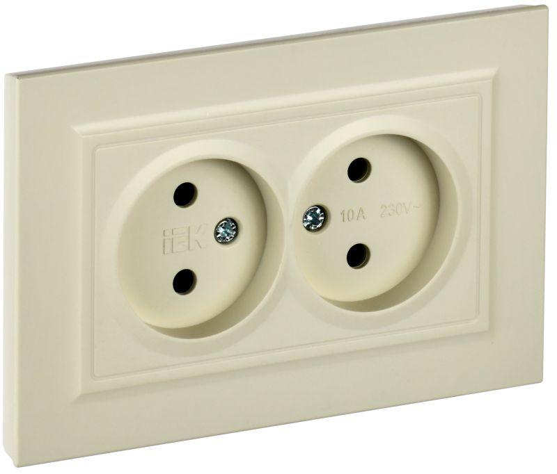 Главная/ Каталог продукции / Электроустановочные изделия / Розетка штепсельная / Розетка 2-м СП BRITE РС12-2-БрКр 10А в сборе без заземл. без защ. шторок беж. IEK BR-R20-10-K10-F