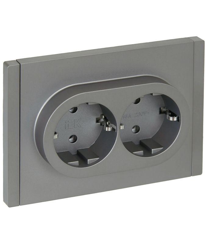 Розетка 2-м СП FORTE&PIANO FP524 16А с заземл. без защ. шторок безвинт. крепл. сталь IEK FP-R21-16-1-K46