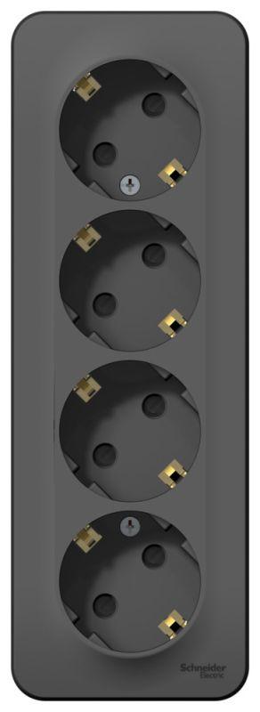 Розетка 4-м ОП Blanca 16А IP20 250В с заземл. защ. шторки с изолир. пластиной антрацит SE BLNRA011416