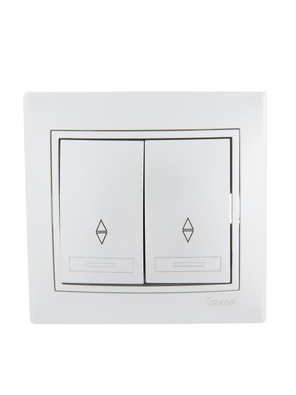 Главная/ Каталог продукции / Электроустановочные изделия / Выключатели, переключатели / Переключатель проходной 2-кл. СП Mira 10А IP20 со вставкой сер. метал. LEZARD 701-1010-106