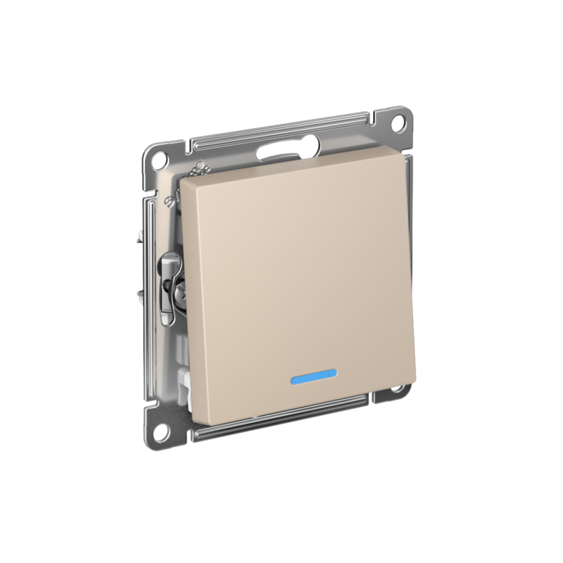 Механизм выключателя 1-клавишного с подсветкой Systeme Electric (ранее Schneider Electric) серии AtlasDesign в цвете песочный подходит для сетей 250 В, на ток 10 А. Благодаря светодиодной подсветке синего цвета изделие легко найти в темноте. Лицевые детали из качественного ABS-пластика, устойчивого к царапинам и УФ-излучению. Усиленные прямые монтажные лапки для лучшей фиксации механизма в монтажной коробке.