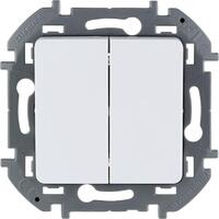 Выключатель двухклавишный скрытого монтажа Inspiria, цвет "Белый", номинальный ток 10АХ, напряжение ~250В, безвинтовые зажимы. Устанавливается в жилых и общественных помещениях для управления приборами освещения, вентиляции и т.д. Предназначен для управления двумя электрическими цепями.