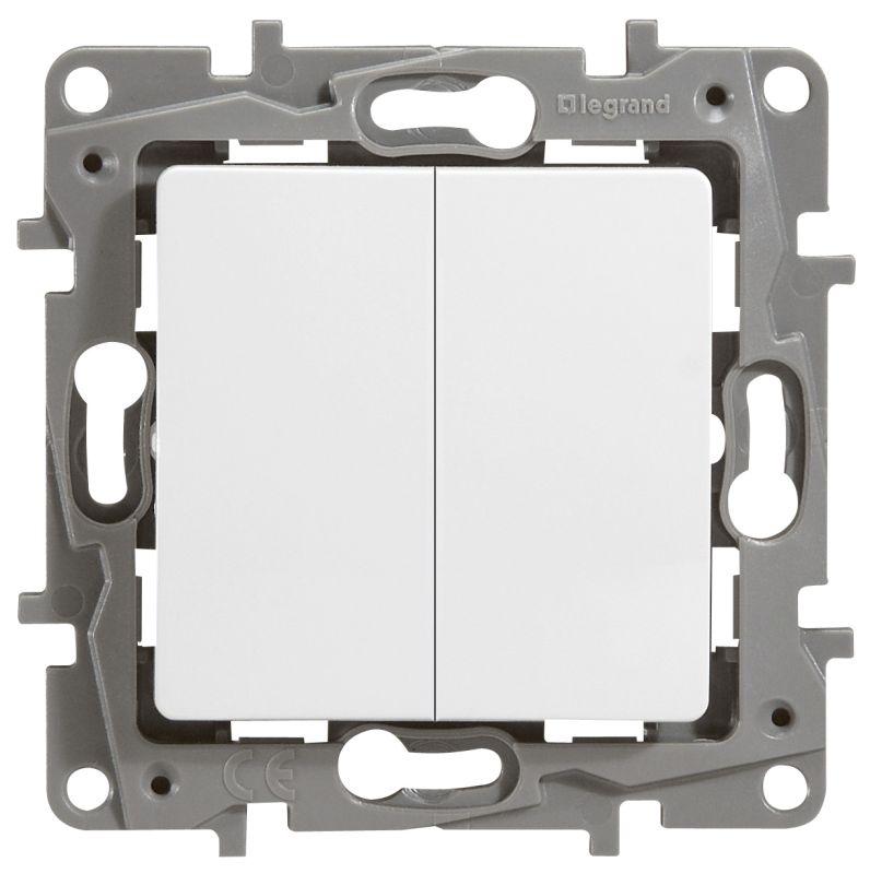 Выключатель двухклавишный ETIKA для скрытого монтажа, номинальный ток 10 А, предназначен для управления двумя электрическими цепями.