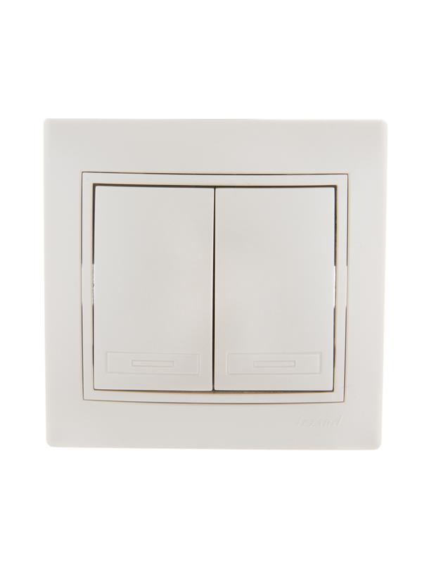 • НАЗНАЧЕНИЕ Выключатель 2-клавишный это двухпозиционный коммутационный аппарат с замыкающими (нормально-разомкнутыми) контактами, предназначенный для работы в сетях с напряжением до 1000 вольт, не предназначенный для отключения токов короткого замыкания, без специальных устройств дугогашения, местного управления, с ручным приводом. • ОБЛАСТЬ ПРИМЕНЕНИЯ В основном применяются для включения и выключения освещения в бытовых и производственных условиях. • ПРИНЦИП ДЕЙСТВИЯ Принцип действия основан на коммутации контактов механическим способом (нажатием) , при этом положения коммутации фиксированы и позволяют находится в этом режиме достаточно долго, вплоть до следующего воздействия. • ДОПОЛНИТЕЛЬНЫЕ ПРИНАДЛЕЖНОСТИ ИЛИ АКСЕССУАРЫ