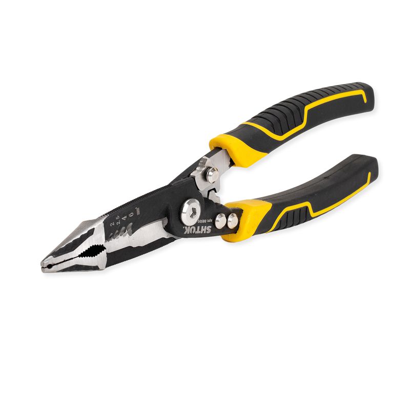 Главная/ Каталог продукции / Инструмент ручной / Клещи для зачистки проводов / Клещи электромонтажные многофункциональные 6-в-1 210мм (08500) SHTOK 376308