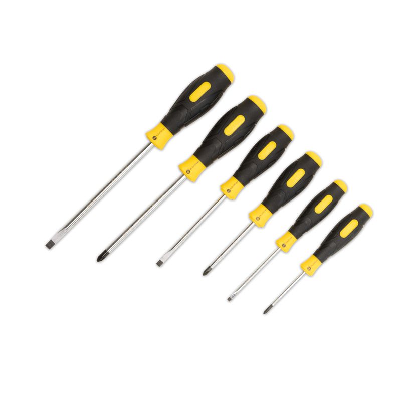 Набор отверток SHTOK 6 шт. картон 09903 состоит из трех шлицевых (3х75 мм, 5,0х100 мм, 6,5х150 мм) и трех крестовых (Ph0х60 мм, Ph1х75 мм, Ph2х125 мм) отверток. Все отвертки оснащены магнитными наконечниками для монтажа в расположенных вертикально приборах. Рабочая часть, изготовленная из хром-ванадиевой стали, обеспечивает прочность и износостойкость отверток. Набор поставляется в картонной упаковке.