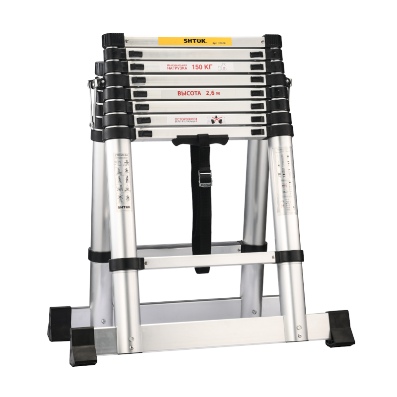Главная/ Каталог продукции / Инструмент ручной / Стремянка / Стремянка телескопическая 2.6м (20018) SHTOK 376555