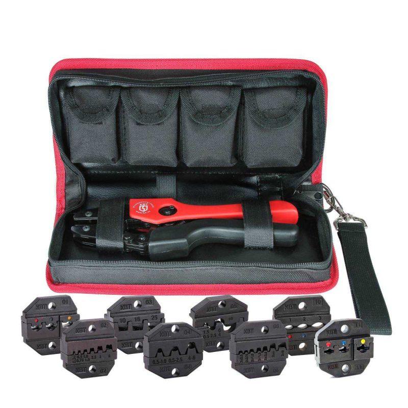 Главная/ Каталог продукции / Инструменты для опрессовки, резки, снятия изоляции / Инструмент для опрессовки кабельных наконечников, оконцевания проводов, присоединения экрана / Набор СТК+8 в сумке КВТ 83347