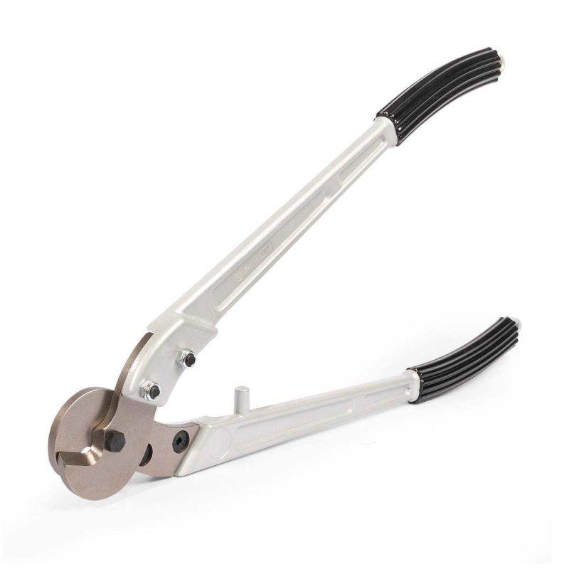 • Диапазон резки: • стальные тросы ? до 10 мм • прутки из низкоуглеродистой стали ? до 6 мм • Материал лезвий: высококачественная хром-молибденовая инструментальная сталь марки DC53 (аналог SKD11, Japan) • Твердость лезвий HRC 58...62 • Специальная форма и заточка лезвий • Легкие литые рукоятки из прочного алюминиевого сплава • Стопорные упоры на рукоятках • Надежные и долговечные модели • Вес: 1.65 кг • Длина: 590 мм