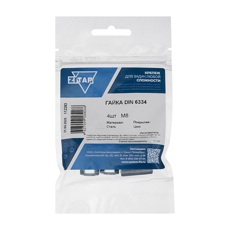 Гайка соединительная М8 DIN 6334 цинк. (пакет) (уп.4шт) Tech-Krep/Zitar 112283