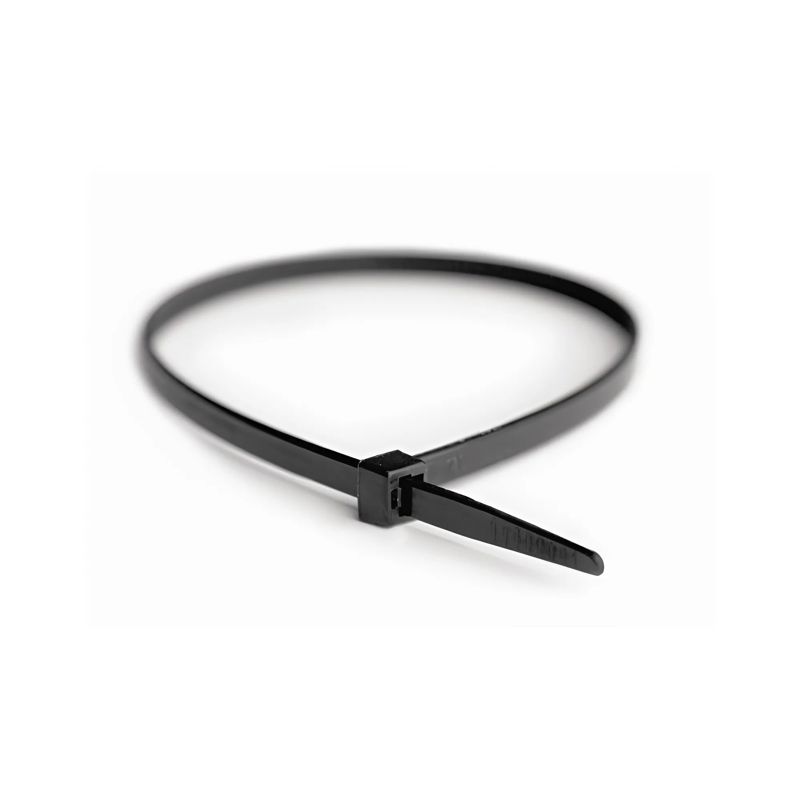 Кабельные хомуты, устойчивые к УФ излучению, применяются для фиксации кабельно-проводниковых трасс вне помещений в условиях длительного воздействия прямых солнечных лучей. Устойчивые к УФ-излучению хомуты широко применяются в южных регионах с повышенной солнечной активностью. В состав материала введены стабилизаторы, позволяющие хомутам сохранять свои свойства при сильном воздействии УФ в течение 10 лет. Размеры: ширина - 7,6 мм, длина - 540 мм, цвет - черный. Температура эксплуатации – от -40 до +85 °С, температура монтажа: от -20 до +85 °С.