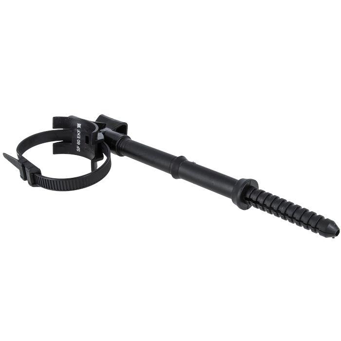 Фасадное крепление типа sf-60 предназначено для крепления спусков пучка проводов СИП по опорам или фасаду здания. Состоит из дюбеля и гвоздя. Монтаж дюбеля осуществляется в предварительно подготовленное отверстие d12, затем фиксируется гвоздем. При монтаже в деревянную поверхность дюбельная часть срезается и гвоздь вбивается напрямую. Крепление устойчиво к ультрафиолетовому и солнечному излучению, высоким и низким температурам, коррозии и агрессивным атмосферным воздействиям.