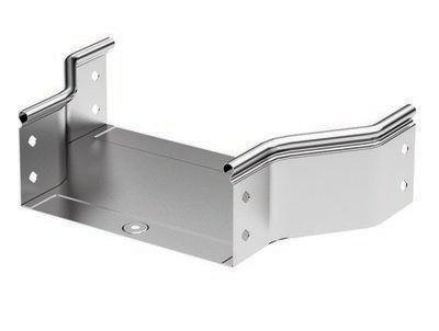 Элементы, входящие в состав системы "S5 Combitech" позволяют предусмотреть любые особенности проектирования и монтажа трассы. При построении кабельных трасс может возникать ситуация, когда требуется увеличить или уменьшить ширину лотка. Для этого применяется переходник (редукция) – аксессуар, имеющий разную ширину в начале и в конце. Симметричная редукция – аксессуар, симметричный относительно средней линии, проходящей вдоль его длины. Этот элемент обеспечивает расширение кабельной трассы со 100 мм до 200 мм или же ее сужение. Максимальная степень пыле- и влагозащиты – IP 44 (при использовании вместе с крышкой и уполотнителями). Высота - 50 мм. Исполнение – "сталь, оцинкованная по методу Сендзимира". В состав комплектного аксессуара входят необходимые крепежные элементы и соединительные пластины.