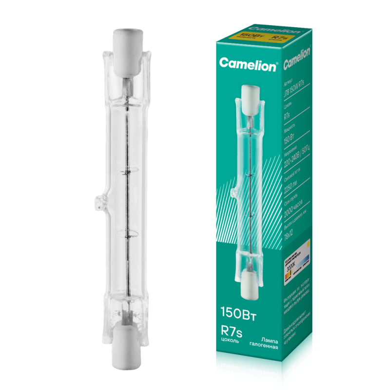 Главная/ Каталог продукции / Лампы / Лампа галогенная сетевого напряжения без отражателя / Лампа галогенная J78 150Вт линейная R7s 3000К 240В Camelion 2933
