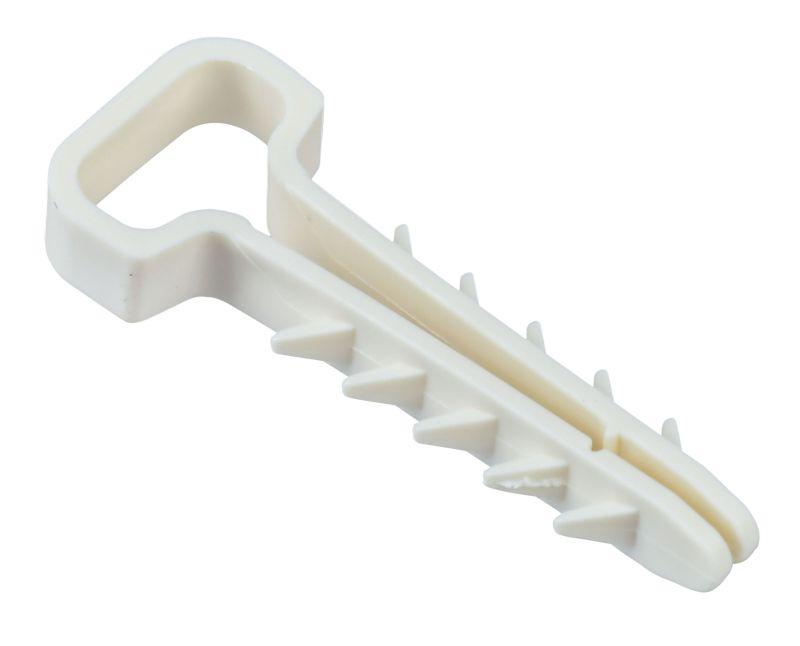 Главная/ Каталог продукции / Материал монтажный / Скоба крепежная / Дюбель-хомут 6х14мм для плоского кабеля нейлон бел. (уп.100шт) IEK UDH14-06-14-100-K01