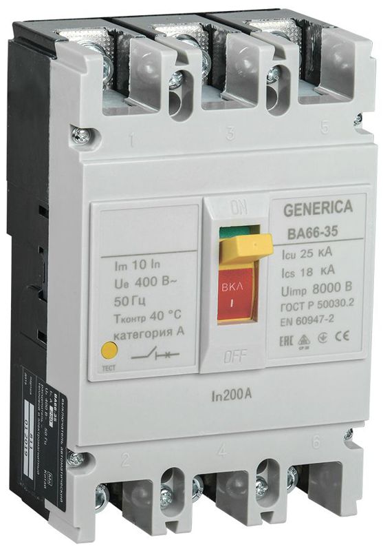 Автоматические выключатели ВА66 GENERICA предназначены для проведения тока в нормальном режиме и отключения тока при коротких замыканиях, перегрузке, а также для оперативных включений и отключений участков электрических цепей. Рассчитаны на эксплуатацию в электроустановках с номинальным рабочим напряжением до 400В и на номинальные токи от 16 до 250А.