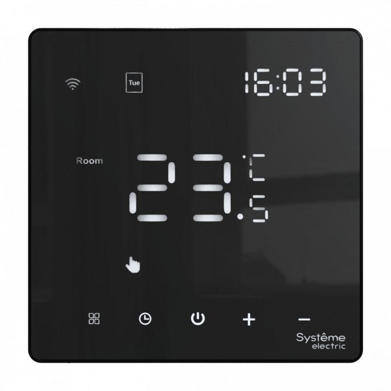 Термостат для электрического теплого пола Systeme Electric серии ArtGallery в цвете черный с Wi-Fi, 16 А