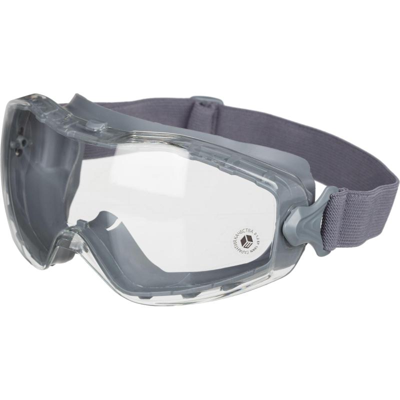 Защитные закрытые очки с непрямой вентиляцией. Инновационная конструкция очков: быстрая сборка/разборка очков, где крепление наголовной ленты соединяет линзу с обтюратором. Двухкомпонентный мягкий обтюратор обеспечивают панорамный обзор, удобную посадку и возможность использования с другими СИЗ: касками, наушниками, фильтрующими полумасками и корригирующими очками. Любой цвет обтюратора по каталогу RAL помогает следовать корпоративному стилю. Есть возможность нанесения логотипа на ленту снаружи и силиконовое покрытие на обратной стороне для уменьшения скольжения (в частности, на каске). Оптический класс защиты №1. Защита от воздействия высокоскоростных частиц при экстремальных температурах: среднеэнергетический удар (B) 120 м/с, (5,90 Дж) – ГОСТ 12.4.253-2013. Устойчивость к адгезии расплавленных металлов и проникновению горячих твердых тел (9). Области применения: жидкости (3) и грубодисперсные аэрозоли (4) – ГОСТ 12.4.253-2013. Твердое двустороннее покрытие линзы с защитой от истирания мелкодисперсными аэрозолями (K) и запотевания (N) – ГОСТ 12.4.253-2013. Срок годности – 3 года с даты изготовления. Вес очков – 80 гр.