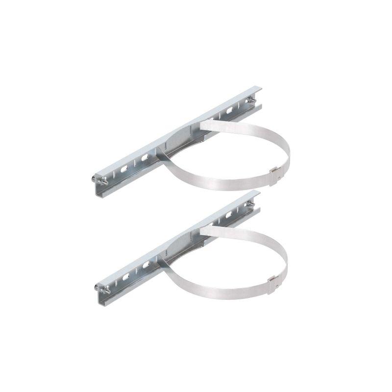 Комплект для крепления корпусов ST, STX, STE, STEX, STH, RAM box шириной 600 мм на опору. Крепежные профили изготавливаются из оцинкованной стали толщиной 2 мм, стяжные хомуты – из нержавеющей стали AISI 304. Максимальная статическая нагрузка на 2 профиля – 300 кг, подходят для круглых опор диаметром 40...195 мм или квадратных опор со стороной 60...165 мм. В комплект поставки входят: 2 профиля, 2 стяжных хомута, 2 замка для фиксации хомутов.