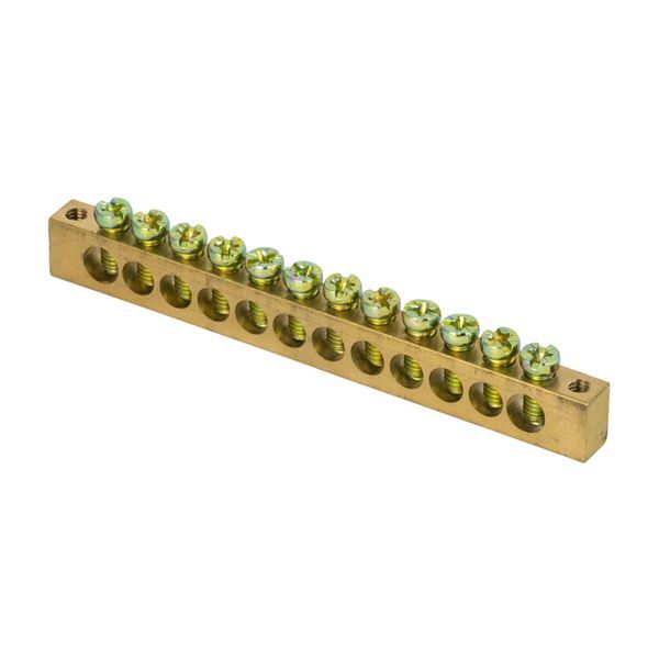 Главная/ Каталог продукции / Системы распределения электроэнергии/распределительные устройства / Заземляющая шина для распределительного щита / Шина PEN "ноль-земля" 6х9 12 отвер. латунь крепеж по краям PROxima EKF sn0-63-12-k
