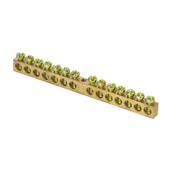 Главная/ Каталог продукции / Системы распределения электроэнергии/распределительные устройства / Заземляющая шина для распределительного щита / Шина PEN "ноль-земля" 6х9 14 отвер. латунь крепеж по центру PROxima EKF sn0-63-14