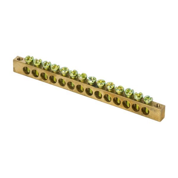 Главная/ Каталог продукции / Системы распределения электроэнергии/распределительные устройства / Заземляющая шина для распределительного щита / Шина PEN "ноль-земля" 6х9 14 отвер. латунь крепеж по краям PROxima EKF sn0-63-14-k