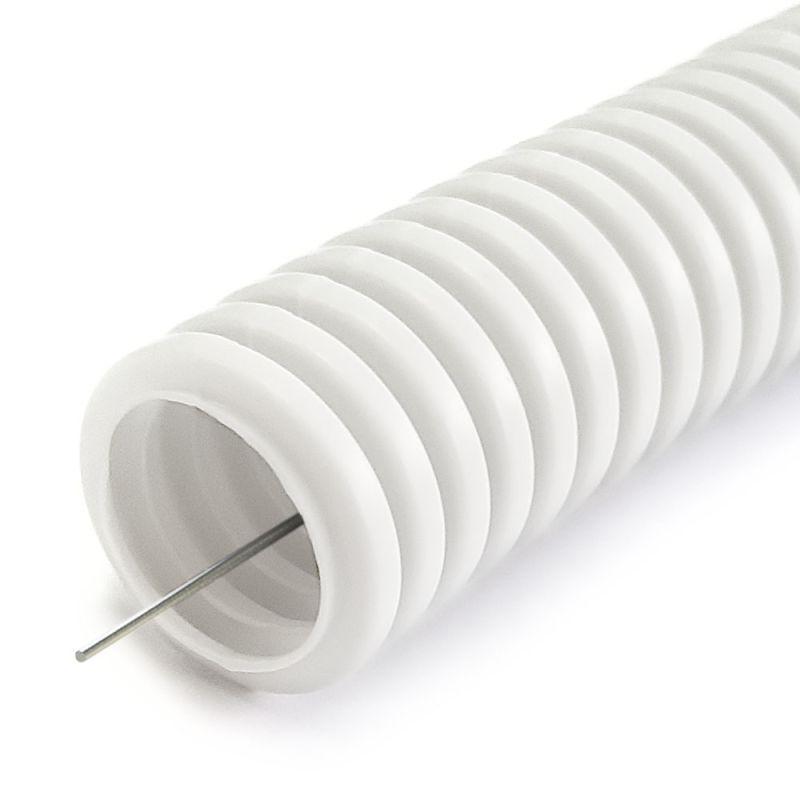Главная/ Каталог продукции / Системы защиты шланговые / Труба гофрированная пластиковая / Труба гофрированная ПЛЛ легкая d20мм с протяжкой безгалоген. (HF) (НГ) бел. (уп.100м) Промрукав PR02.0215