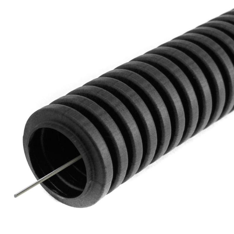 Труба гофрированная ПВХ легкая d16мм с протяжкой 350 Н черн. (уп.50м) Промрукав PR01.0054