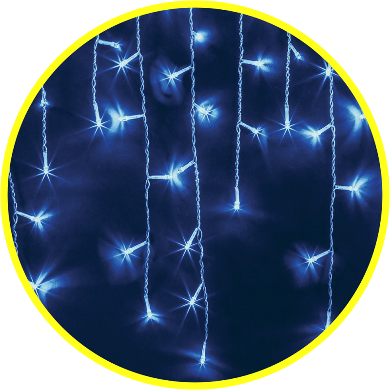 Гирлянда «бахрома» 2 х 0,5 метра Размер: 2 х 0,5 м (Общая длина с проводом 3.5 метра) Количество светодиодов: 100 шт. Расстояние между светодиодами: 8 см Соединение в линию: до 5 гирлянд Тип провода: морозостойкий, прозрачный ПВХ