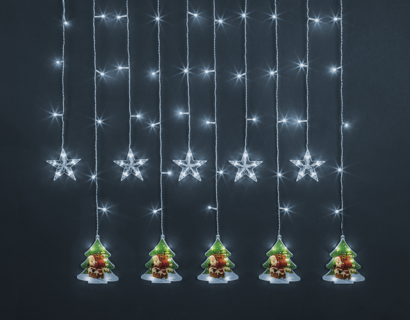 Главная/ Каталог продукции / Светильники / Освещение иллюминационное / Гирлянда светодиодная "Бахрома" "Звезды и елки" 95 028 NGF-D037-05 3х0.6м CW IP20 Navigator 95028