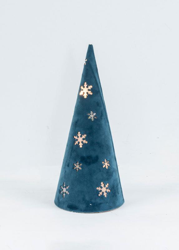 Настольный светильник "ЕЛОЧКА" KOC_TAB-B106. Коллекция настольных елочек Космос - это не традиционные новогоднии деревья, а модное украшение и настольный светильник. Высота конуса 25см и 9см в диаметре у основания. Синяя и бархатная елочка, снаружи с вырезами для 8 светодиодов, окутает помещение теплым белым светом. Елочка-конус украсить собой новогодний стол, любую полочку или подоконнник, вернет в детство, где повсюду были напоминания о любимом празднике. работает от батреек АА.